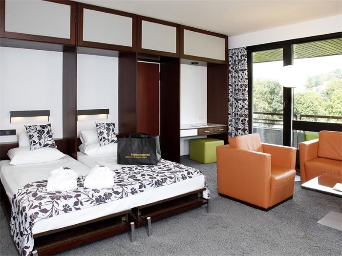 Komfortables logieren in bester Lage? Das bieten Ihnen die komfortablen Zimmer und Suiten des Hotels an der Therme Bad Orb. Genießen Sie den Blick vom eigenen Balkon und eine Ausstattung der Räume, die alle Wünsche erfüllt: viele schöne Details machen Ihren Aufenthalt zu einem erholsamen Erlebnis.