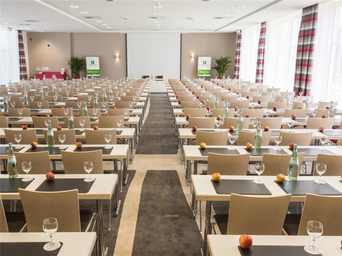 Mit anspruchsvoller Seminartechnik, Tageslicht und Klimaanlage bilden die sechs multifunktionalen Veranstaltungsräume im Holiday Inn Düsseldorf Neuss den idealen Rahmen für Konferenzen, Kongresse, Meetings und Feiern von 10 bis 350 Personen. Im unmittelbar gegenüber liegenden Euromoda stehen Ihnen bis zu 35 weitere Tagungs- & Gruppenräume zur Verfügung. Die Abwicklung und der Service erfolgen aus einer Hand durch das Hotel. Mit uns können Sie Ihre Feierlichkeiten für bis zu 500 Personen gestalten. Wir verwandeln jede Ihrer Ideen in ein passendes Gesamtkonzept.